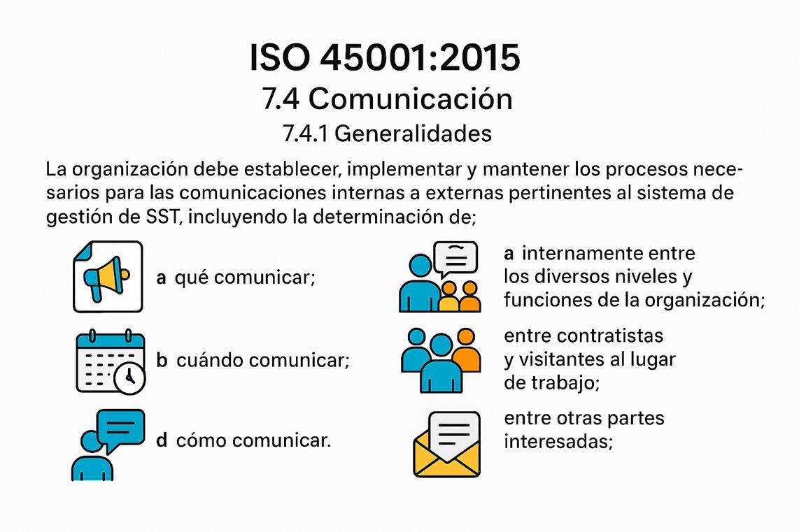 7.4 Comunicación Requiere determinar qué, cuándo, a quién y cómo comunicar; incluye comunicación interna