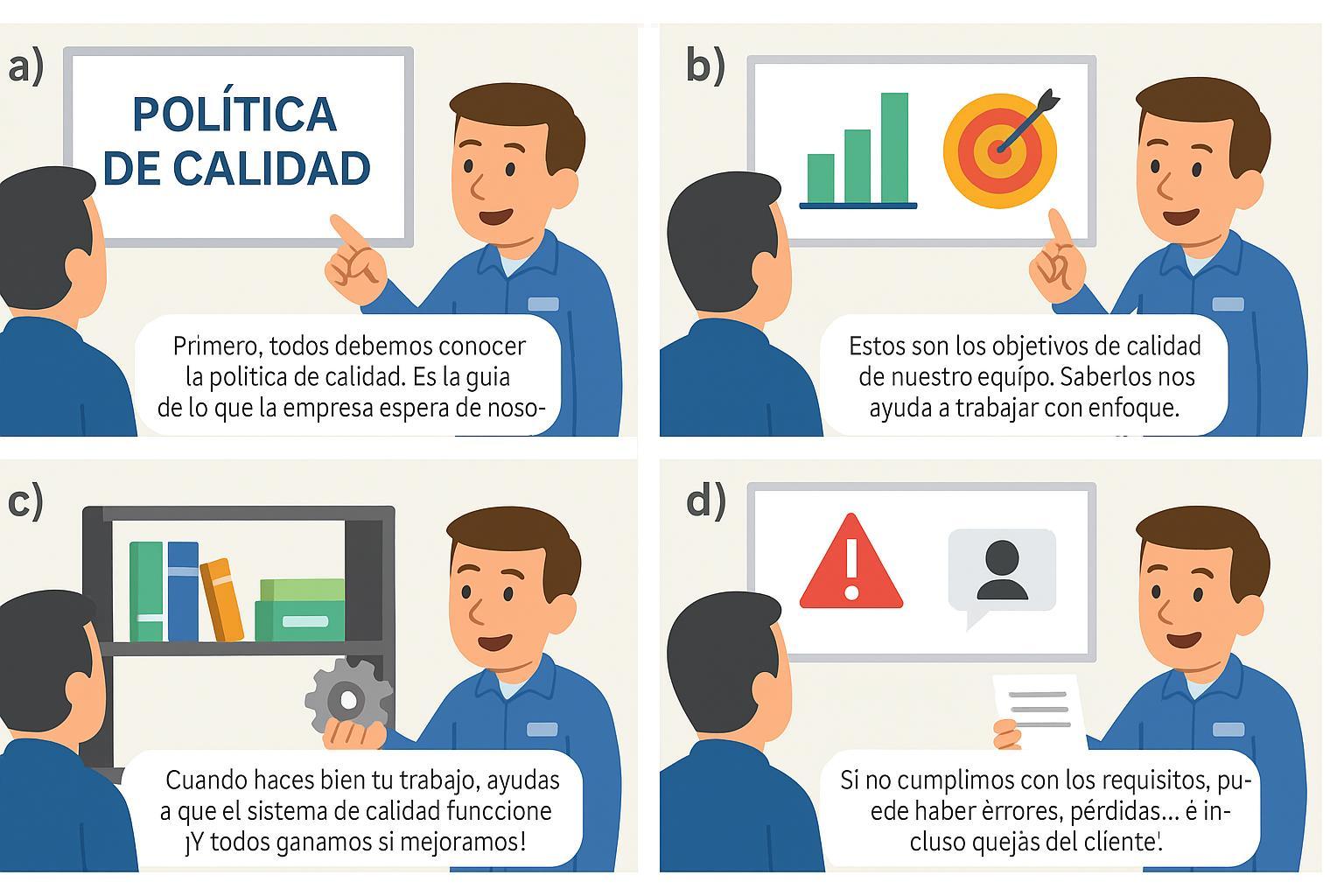 7.3 Toma de conciencia Conciencia de la política, objetivos de calidad, contribución personal, implicaciones de no conformidad