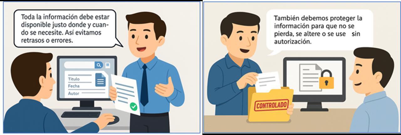 7.5.3.1Lainformacióndocumentadarequeridaporelsistemadegestióndelacalidadyporesta NormaInternacionalsedebecontrolarparaasegurarsedeque: a)estédisponibleyseaidóneaparasuuso,dondeycuandosenecesite; b) esté protegida adecuadamente (por ejemplo, contra pérdida de la confidencialidad, usoinadecuadoopérdidadeintegridad).