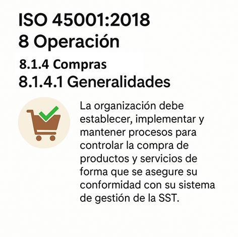 La organización debe establecer, implementar y mantener procesos para controlar la compra de productos y servicios de forma que se asegure su conformidad con su sistema de gestión de la SST.