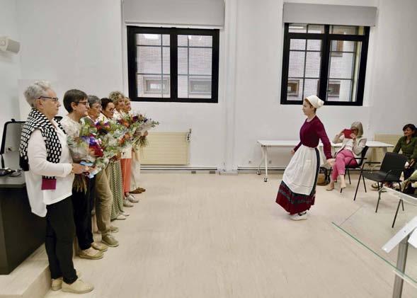 Tras unas palabras de agradecimiento, les hicimos unos obsequios y un homenaje con un aurresku bailado en su honor.
