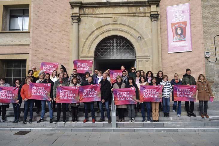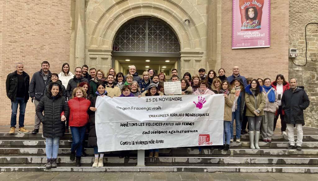 El 25 de noviembre, Día Internacional de la Eliminación de la Violencia contra la Mujer, es un día reconocido oficialmente por Naciones Unidas, que tiene el objetivo de mostrar la solidaridad de la sociedad “para evitar el retroceso de los derechos de las mujeres y conseguir un mundo libre de violencia de género.” Otras instituciones públicas, tales como el mismo Gobierno de Navarra, aprobaron declaraciones institucionales en las que mostraron su compromiso y se animó a la sociedad a participar. Como entidad pública dependiente precisamente del Departamento de Educación del Gobierno de Navarra, el equipo directivo de la Escuela Oficial de Idiomas de PamplonaIruñeko Hizuntza Eskola Ofiziala consideró pertinente sumarse a esta conmemoración y se hizo un llamamiento a sumarse voluntariamente a la iniciativa de salir durante unos minutos frente a la Escuela y expresar nuestro compromiso en la eliminación de la violencia contra las mujeres.