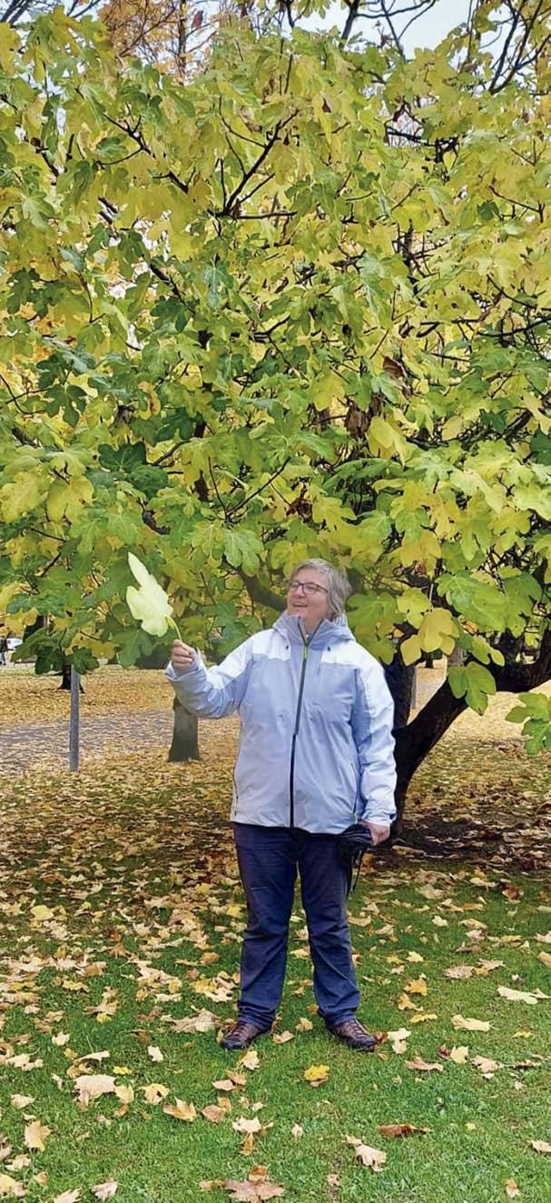 Danach ging es weiter auf der Suche nach Asien. Doch zu unserem Entsetzen fanden wir die Kompostanlage!!!!, wo wir Walnüsse und Feigen fanden. Und danach kamen wir zu den schönen geschnittenen Eiben, einem Nadelbaum, der zwar giftig ist, aber als Formgehölz seit Jahrhunderten in unseren Gärten und Parks zu bewundern ist. Hier machte Marion einen Punkt und erzählte uns zum Schluss, dass die Eibe auch ein sakraler Baum ist und in Europa an religiösen Tempeln gepflanzt wurde. In ihrer Heimatstadt wurde am 9.November 1938 die Synagoge zerstört, doch die Eibe steht bis heute.