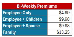 Employees regularly working 30 or more hours per week are eligible to enroll in benefits.
