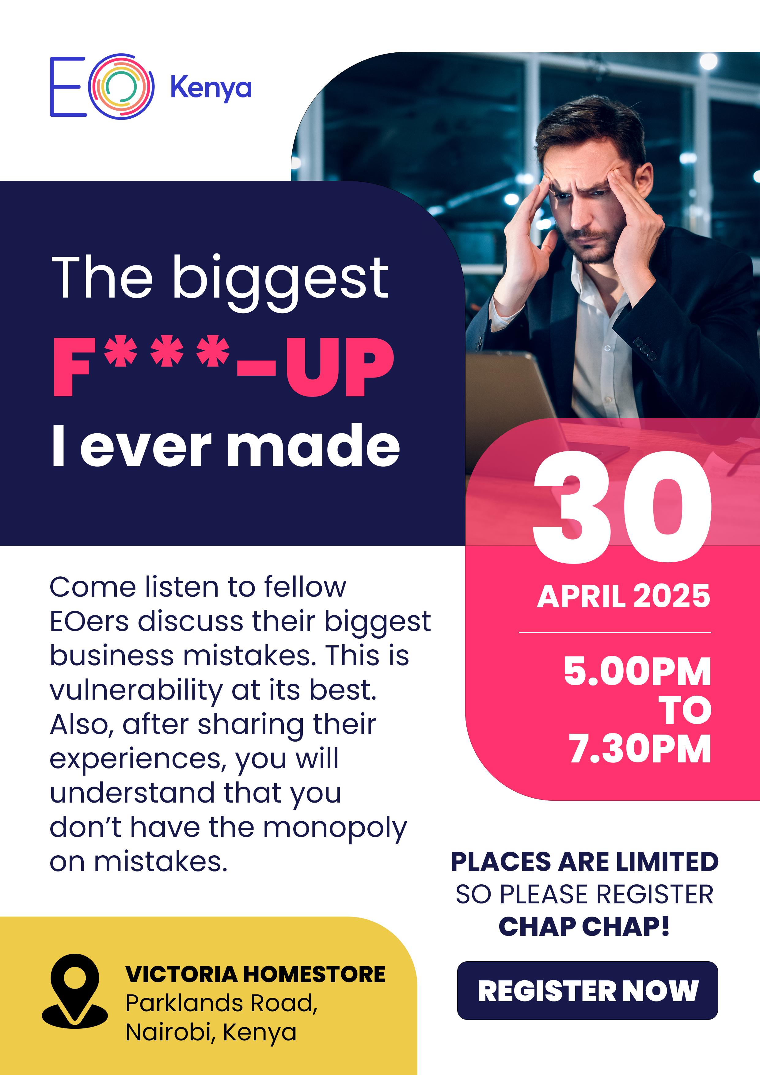 Being an entrepreneur isn’t for the faint hearted. It’s often a lonely adventure filled with triumphs and heartbreaking setbacks. Join EO Kenya and Joey Evans on the 24th of May as Joey shares his 10 year journey from being paralysed to racing the Dakar Rally. Joey’s message is one of determination in the face of insurmountable odds. As a best-selling author