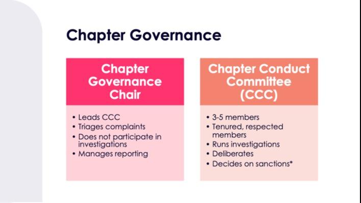 Important: The Governance Chair does not participate in investigations or sanctioning decisions. Instead, they serve as a neutral liaison with the member-led investigation committee.