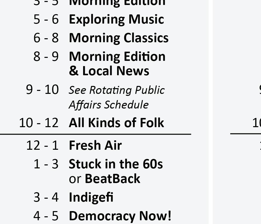 Region through commercial-free community radio programs and services that enrich life by illuminating the role of the arts, promoting cultural and educational growth, and bringing focus to current issues of local and regional public interest while providing a forum for diverse and under-served groups.