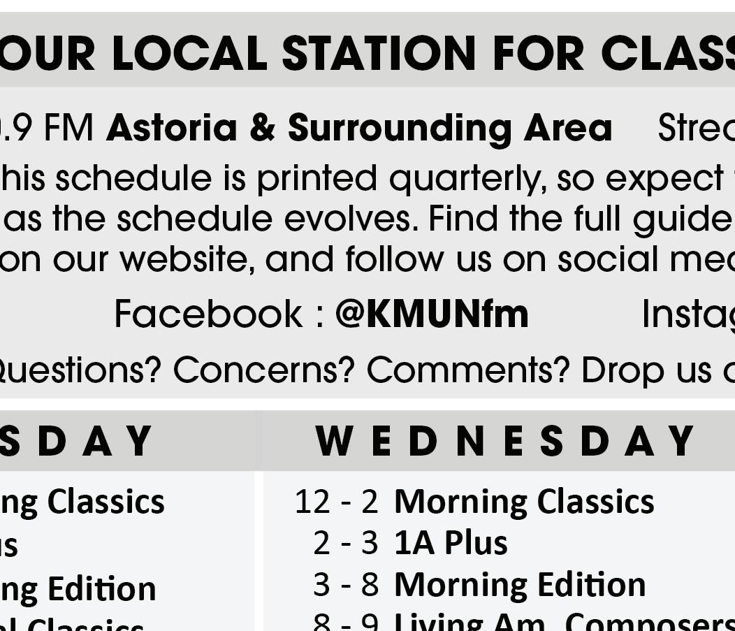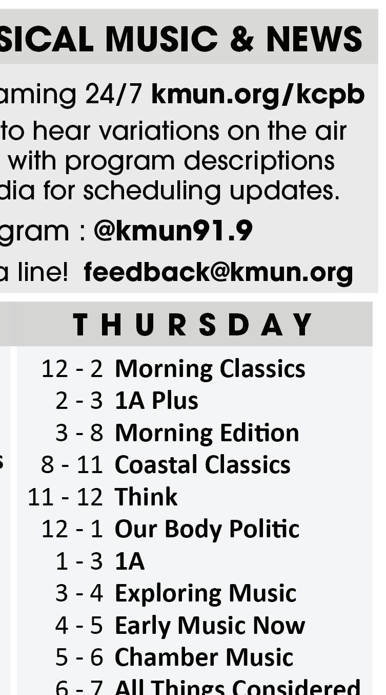 KMUN’s Community Advisory Board has been restructured, and is currently recruiting members. For more information on the CAB’s purpose and quali cations visit: kmun.org/about/coastcommunity-radio-community-advisory-board or contact Susan (susan@kmun.org).