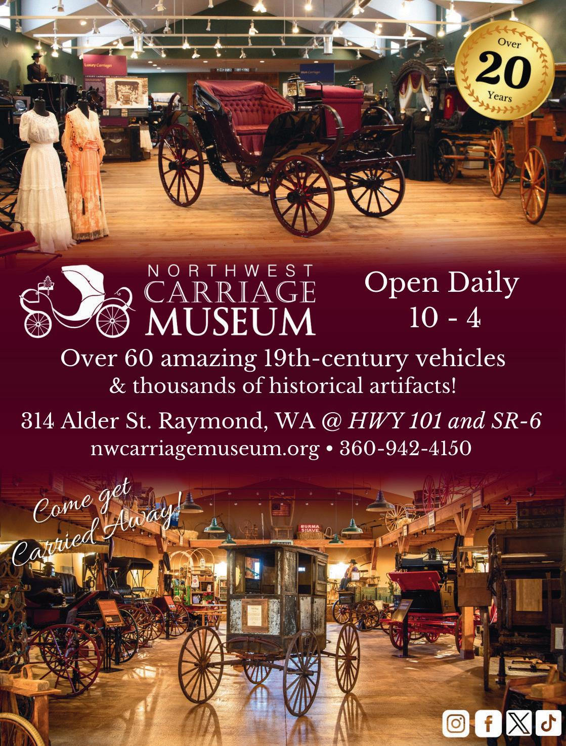 The Northwest Carriage Museum, Raymond. It showcases 60 restored 19th-century horse-drawn vehicles and thousands of period artifacts, and interactive exhibits.