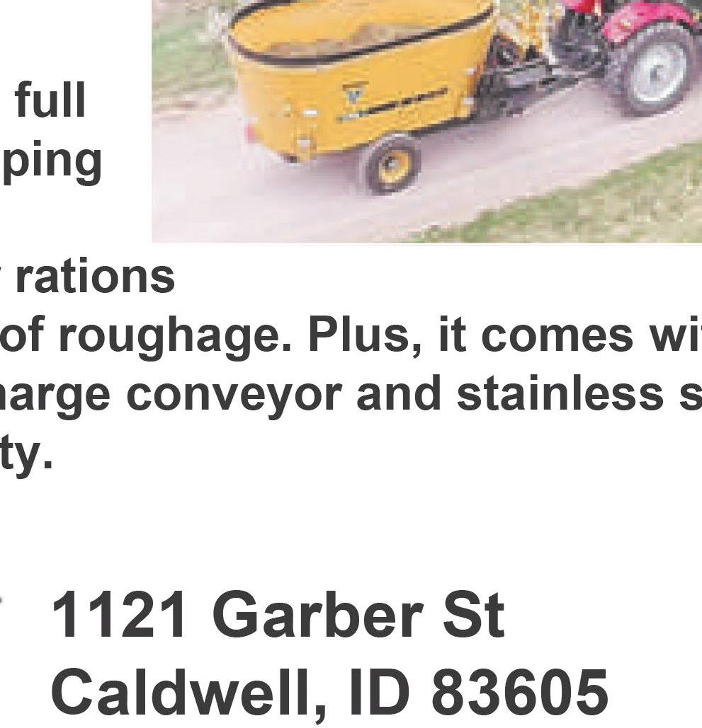 C16 The Growers’ Guide March 2023 TRUCKS & TRAILERS ’85 CHEVROLET K30 DUALLY, 108K Mi, V8, 4WD, AT, 8’ Flatbed $7,950 ’89 FORD F250, 7.3L Diesel, Regular Cab, 4W $5,000 ’91 DODGE 250, 154K Mi, V8, 4WD, 9’ Flatbed $3,950 ‘77 TOTEM-ALL EQUIPMENT TRAILER 15 Ton, 16’ + 4’ Beavertail.............................................$4,950 ASK FOR ERICK! (208) 882-6531 WWW.JECOSUPPLY.COM YOUR BEST DEALS ARE AT... ’16 CONTINENTAL CARGO WEDGE TRAILER, 12’ x 7’, Single Axle, Optional Doors/Window, Light Pkg/ Wheels/Spare, Conversion For Sleeping Quarters $6,995 CANCADE TRUCK BED, 20’, Hoist, Pump & Tank....$9,950 TYLER TENDER BODY CALL SHOPBUILT BACKBACKER, 1100 Gallon Cone Tank, Hydraulic Drive Pump $7,950 VALMAR AIRFLO 6600 DRY SPREADER, 60‘ Booms, Roll Tarp, Duals, Detroit Diesel Powered Air Fan $19,995 HD POWER SYSTEMS 8000 WATT GENERATOR, Unused, 13 HP Honda Engine, Electric Start $750 SHOPBUILT HYDRAULIC ROLLER CART, 40’ $4,500 Combine Parts In Stock! • Augers • Drapers • Concaves • Cuttings Parts • Sprockets • Chaffers & Sieves • Feederhouse Chains • MacDon Guards & Drapers • Liner Kits for Auger Tubes & Cones CROSS SLOT DRILL, 21.5’, Mark IV Openers, Late Blades, 2600 Solution Tanks, AgPro Airbox.........$65,000 IH 150 SPLIT PACKER DRILLS, 40’, 18” Spacing, New Stoess Hitch..........................................................$9,000 JOHN DEERE 750 DRILL, 30’, 7.5” Spacing, 15” Spacing On Deep Banders.................................$25,000 CASE IH PRECISION 500T DRILL RUNS FOR SMALL SEED $2,950 AGPRO DRILL TOOLBAR, 30’......................$4,950 DRILL TRACTORS ’62 JD 3010, 1634 Hrs on Overhaul, Du-Al Loader, 2 Rear Remotes $10,500 TILLAGE SHOPBUILT HARROW CART 61’, 7-Bar HD Harrow, 10-11” Tines, Airbox $22,000 SCHULTE 5026 BATWING MOWER, 26’ $25,000 JD 1050 CULTIVATOR, 45’, JD Tine Harrow, Chrome Alloy Points $5,950 DEGELMAN SK800 GRAIN CART, PTO Drive, Roll Tarp $22,500 HARVEST MACDON D65-S DRAPER HEAD 30’, Triple Delivery, Transport Kit $19,500 MISCELLANEOUS • Camso • Soucy • • Trackman • • Firestone • IN STOCK! AG TRACKS ’96 CIH 1015 PICKUP HEAD, 13’..............$6,000 ACME FORKLIFT, 4WD, Front Duals................$1,000 (4) TITAN 380/90R46 TIRES ON ROGATOR WHEELS $300 EA. RAVEN ENVIZIO PRO XL, Switch Pro, SmarTrax Node, Antenna, Full Harness...............................$4,500 ’88 CHEVROLET 2500, 6.2L Diesel Engine, Regular Cab, 4WD $7,000