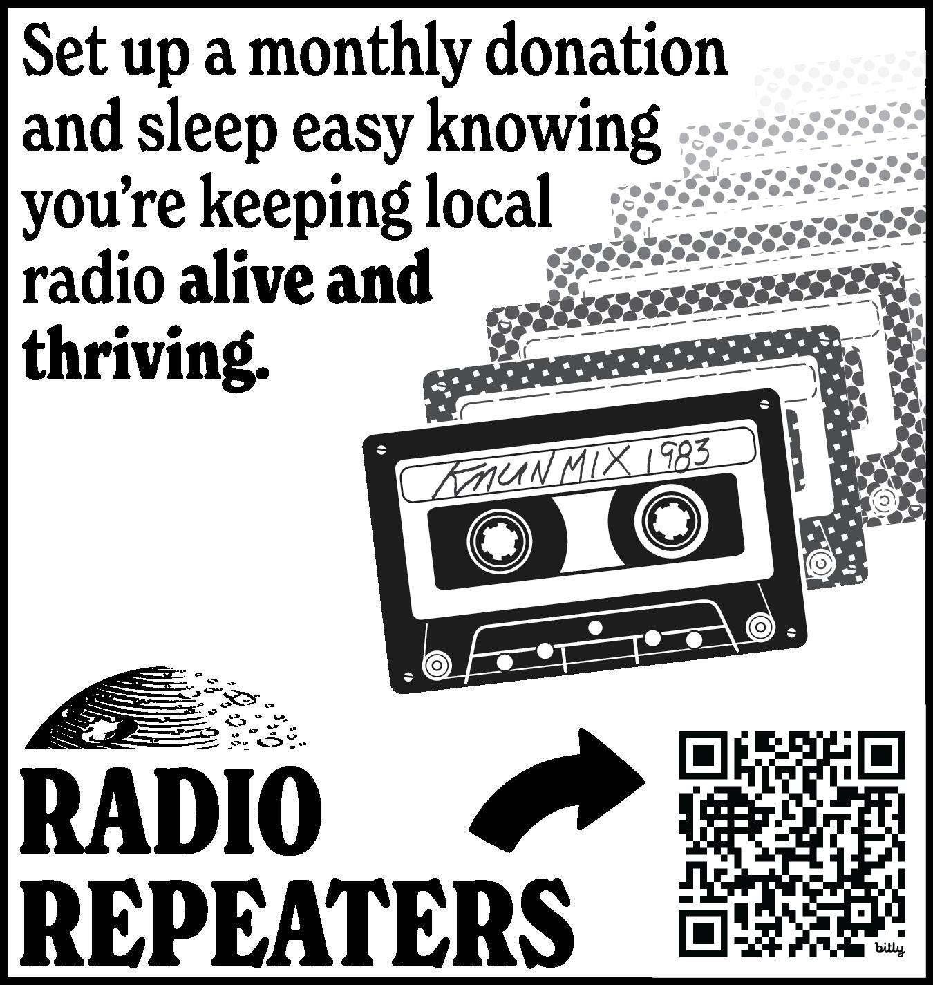 SEND US YOUR PHOTOS of you listening to KMUN! We’ve always wanted to see through the frequency. Send to: classifieds@ kmun.org