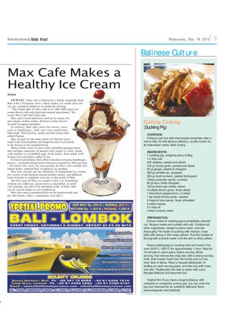 UlUWATU - Max cafe is helmed by a family originally from Bali with a European twist, which makes ice cream does not use any chemical additives or artificial coloring. “The initial idea of Max cafe is to offer Bali great ice cream flavor with only fresh and natural ingredients,” Director Max Cafe Ami Zijta said. Max caters sweet selections such as ice cream, frozen yogurt, sorbet, crepes, fried ice cream, brownies and European pancakes. In contrary, Max also caters the savory crave, such as hamburgers, built your own sandwiches, beef steak, Maxi goreng , pasta, and the unique dish called Panzai. Max located on the main street of Uluwatu decorated with white bamboo and lampions that is not easily to be missed in the neighborhood. Menu at Max varies; it starts with a breakfast package menu that includes selection of muesli with yogurt or toast, bread with omelets or scrambled eggs, fresh juices, fruit salad, with freshly brewed Italian coffee or tea. For lunch and dinner, Max offers selections of pasta, hamburger, panzai – a pancake based meal with pizza sensations, Maxi goreng – for those who crave for nasi goreng ala Max with curried rice, baked beans, smoked beef wrapped in an omelets. Max best choices are the selections of homemade ice creams, the variety of the freshest natural healthy drinks, and different kind of meals to complete your day in the south of Bali. The best part of Max ice cream is that it is homemade without any additives, preservatives, emulsifier, or artificial coloring, any flavor by minimum order of half a liter can be custom made to your preference. Max also caters customized flavors for professional supply like hotels, villa’s, restaurants, and cafe’s.