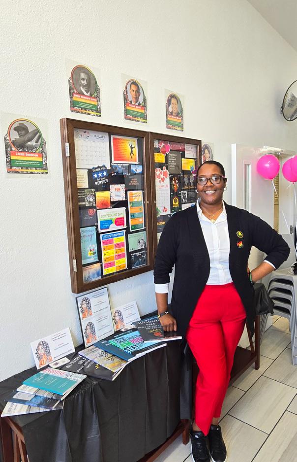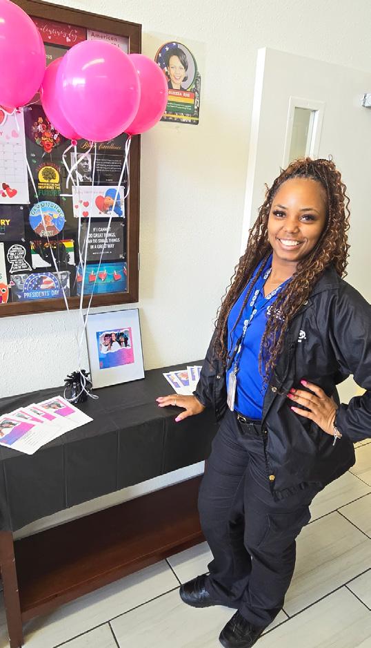 Over the past year, the Monterey Day Reporting Center (DRC) has undergone a lot of change, but as GEO is aware, change is often beneficial. A sobriety wall, which allows participants to visualize their days of sobriety and move their name across as they reach milestones in that sobriety, is a recent addition to the Monterey DRC walls. This sobriety wall was designed by Janette Amezcua, a Behavior Change Manager. Ms. Amezcua requested to take the lead on the sobriety wall; one of many projects she has finished at the DRC over the last few months, after a recent EvidenceBased Practices (EBP) Fidelity Review brought attention to the lack of participant recognition at the DRC. Ms. Amezcua surprised her Program Manager by demonstrating a high level of creativity and completing the project quickly due to her interest in it. Her sobriety wall turned out fantastic. Every 30 days of sobriety gained is rewarded along the way. Using her imagination, Ms. Amezcua produced a sobriety wall that is both entertaining and adheres to the EBP principle of increasing positive reinforcement. Ms. Amezcua shared her talents further by updating the rewards system to include an artistic rewards binder that showcases possible reward options with a QR code that participants can scan to see the rewards any time and any where. This success highlights the importance of investing in staff strengths because they are our greatest asset!