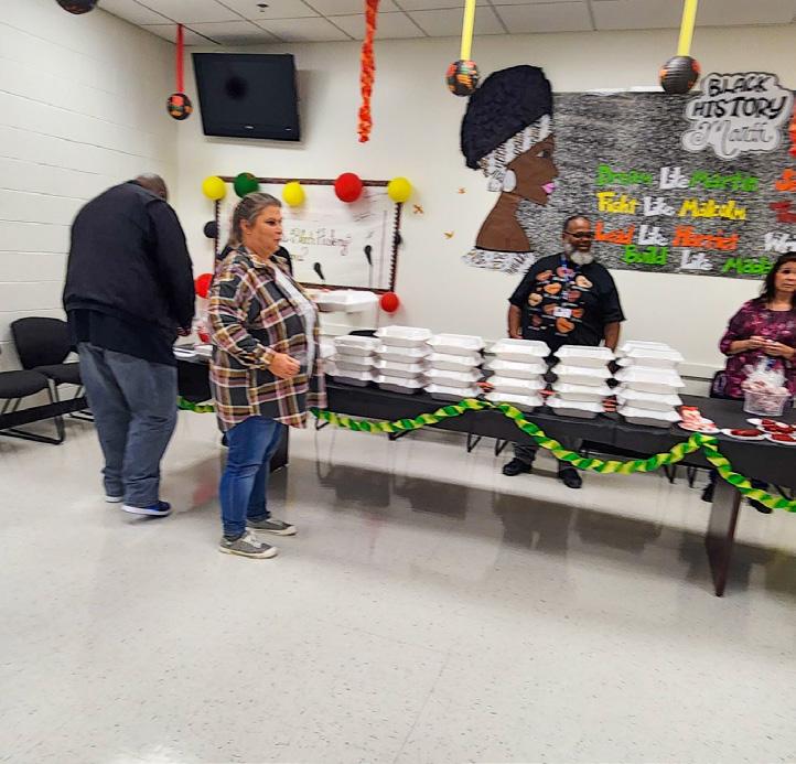 The Alabama Therapeutic and Education Facility's (ATEF) Morale Committee carries out a range of initiatives to foster a sense of appreciation and value among our employees. The Black History Celebration Luncheon was arranged by the Morale Committee on Friday, February 16, 2024, in honor of Black History Month. It was an opportunity for every employee to sport their favorite Black History shirt. On a wall that was displayed in the main conference room, each person was also able to share what black history meant to them. Love, harmony, camaraderie, and laughter characterized the day.