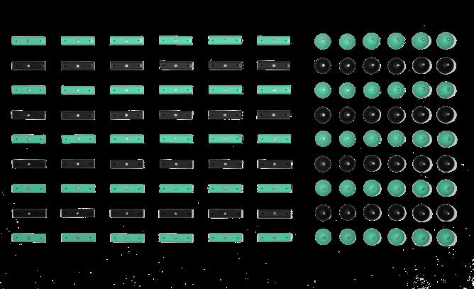 • For lead: use 3 to 4 holds per meter for a hard route, and 6 to 7 holds for an easy route. Also, in order not to saturate your wall, we recommend to keep up a maximum 3 routes per climbing line.