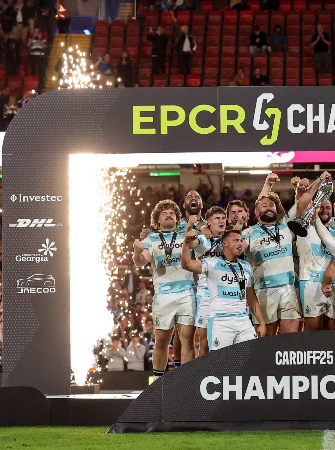 Bath Rugby celebrate their EPCR Challenge Cup Final victory in Cardiff