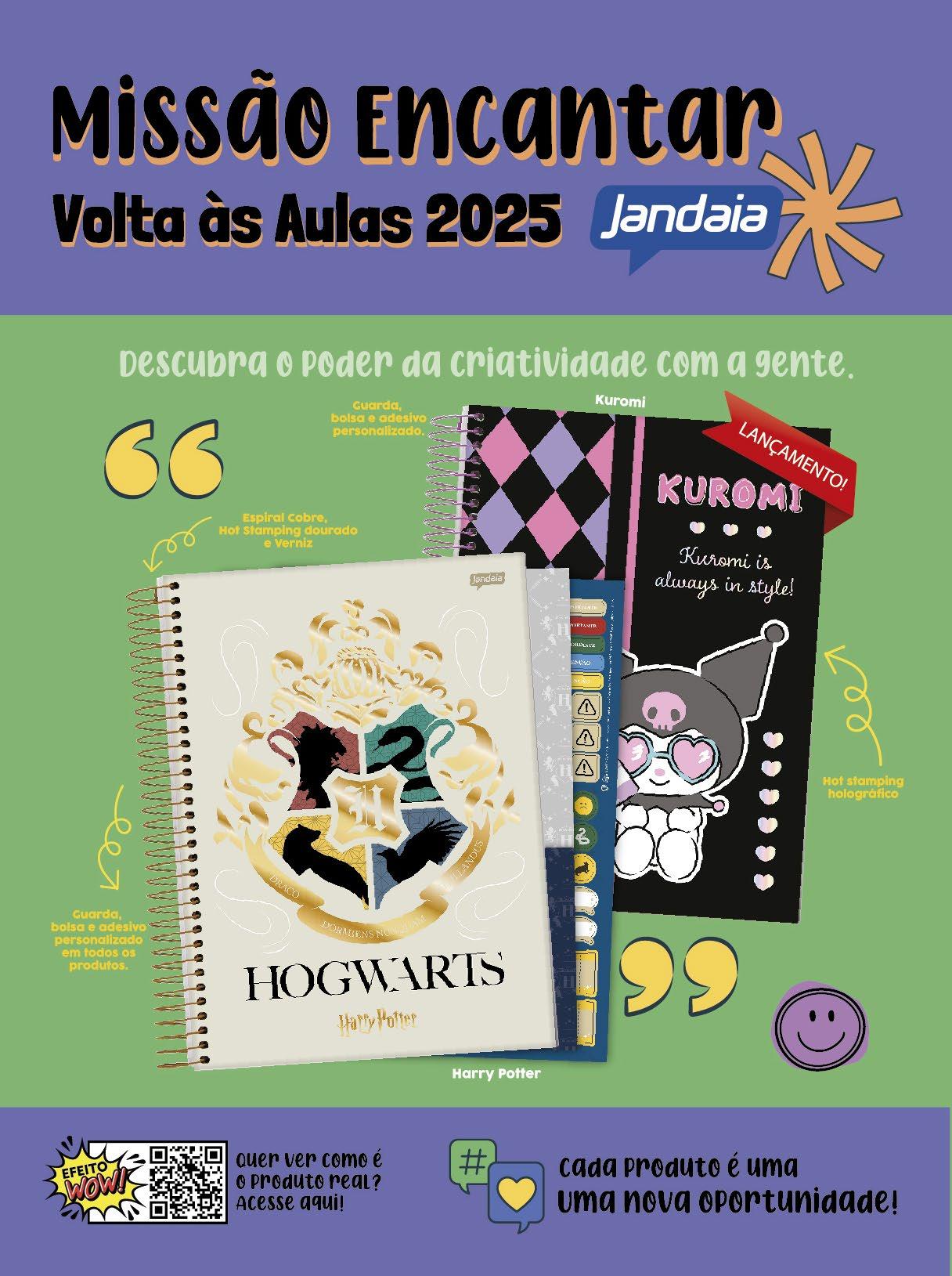 O objetivo é encantar o público com a essência da batalha épica entre as forças do bem e do mal, refletindo nas capas dos cadernos todo o espírito de ação e aventura que permeia a saga dos personagens. Disponíveis nos modelos universitário, brochura, cartografia e desenho, os cadernos destacam-se pela qualidade de acabamento, em laminação fosca, e pelas cartelas de adesivos, que permitem a personalização de suas anotações com os personagens favoritos da série.