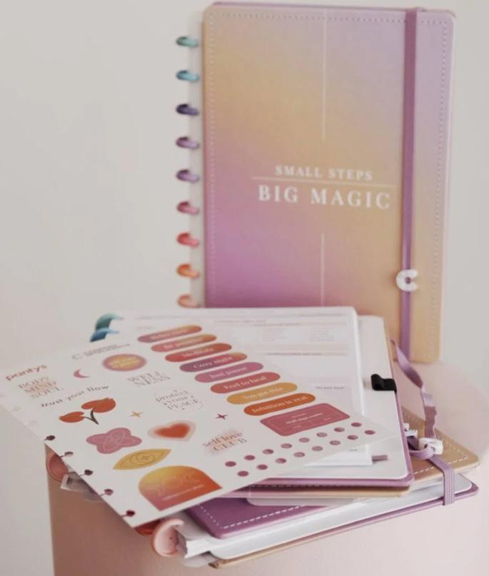 Criado no formato clássico do Caderno Inteligente, o produto conta com discos reposicionáveis que permitem reorganizar páginas, retirar ou incluir folhas e personalizar o diário conforme a necessidade, tornando-o um aliado para metas, rituais diários, reflexões e práticas de bem-estar.