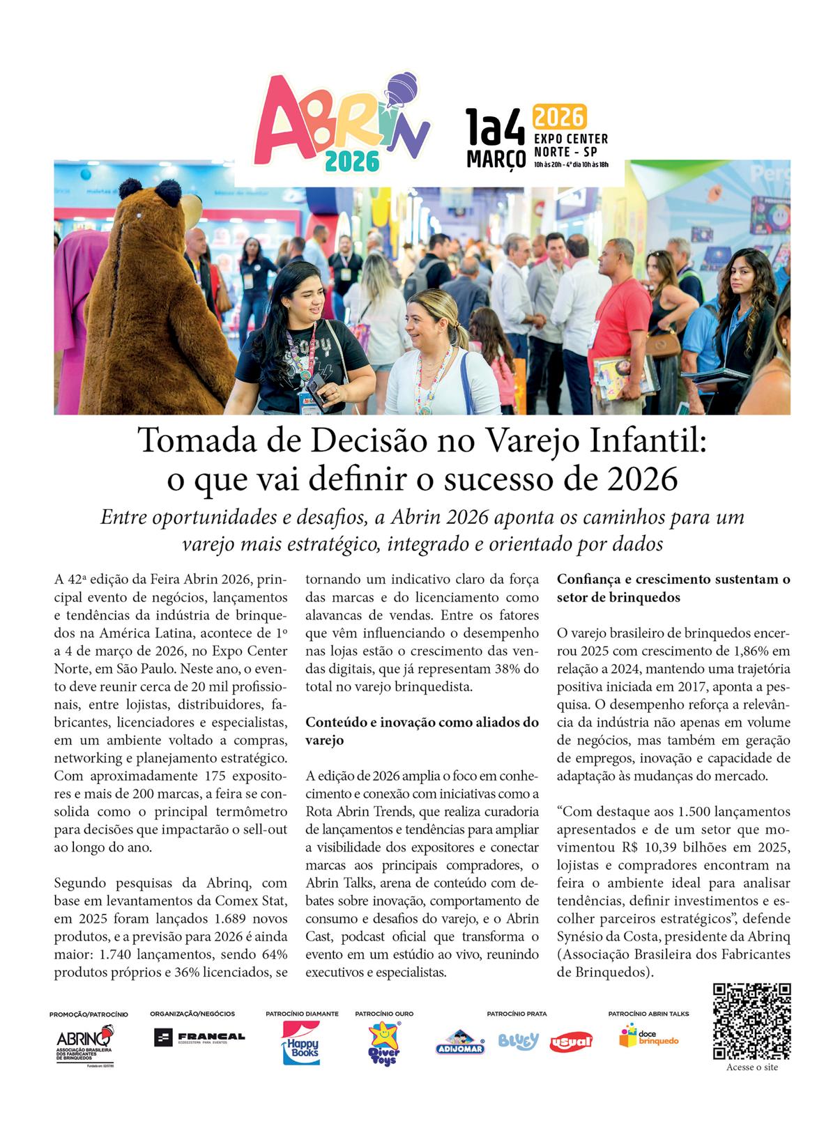 Mais do que uma revista, a Espaço Brinquedo – Especial Abrin é um guia estratégico para quem vive o mercado e acredita que o futuro do brincar começa nas decisões de hoje.