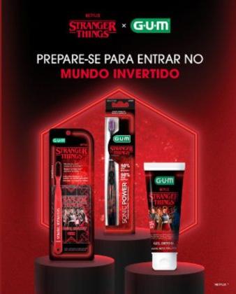 A GUM, especialista em higiene bucal, lança uma linha exclusiva em parceria com a série Stranger Things da Netflix, aproveitando a proximidade da última temporada. A coleção inclui escovas de dente (Classic e Sonic Power) e gel dental com flúor, todos com design temático e cards exclusivos.