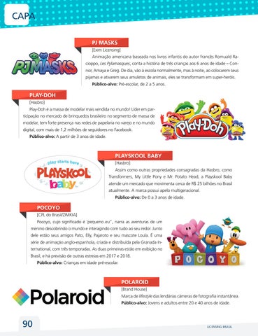 CAPA PJ MASKS [Exim Licensing] Animação americana baseada nos livros infantis do autor francês Romuald Racioppo, Les Pylamasques, conta a história de três crianças aos 6 anos de idade – Connor, Amaya e Greg. De dia, vão à escola normalmente, mas à noite, ao colocarem seus pijamas e ativarem seus amuletos de animais, eles se transformam em super-heróis. Público-alvo: Pré-escolar, de 2 a 5 anos.