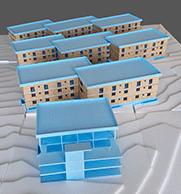 This professional project involved alterations and extensions to 36 flatted dwellings over 9 buildings. The redesign as part of a feasibility study involved designing-in of accessiblity. This has been achieved by adapting existing and proposing new elements which generously meet the needs of the elderly, students and single-parent families.The project has involved the use of ArchiCAD, AutoCAD and the Adobe Suite. As well as the creation of physical models in card, foam and MDF in scales 1:200-1:50.