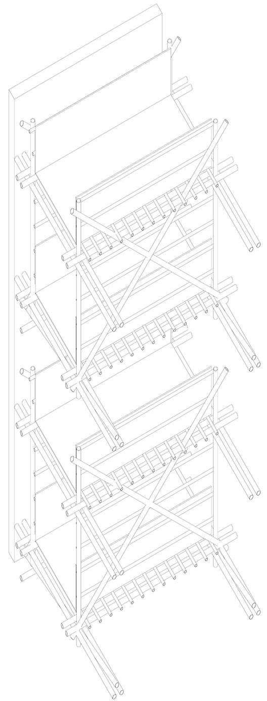 Inspired by examples in Jansen, Jules. Building with Bamboo: A Handbook. Connections lashed with bamboo fibre.