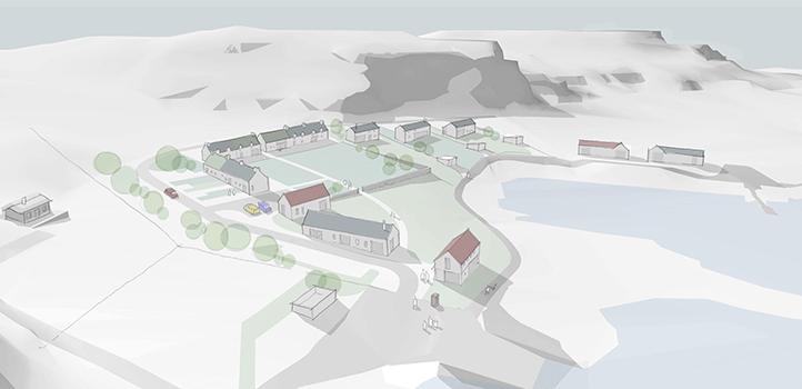 These images produced for a round of community consulatations for the Isle of Luing Development Plan and Strategic Report. The design shown highlight the existing vernacular influence on housing and community assets proposed for different parts of the Island. The new mixed-use recommendations are the first of Argyll and Bute’s communityled plans.
