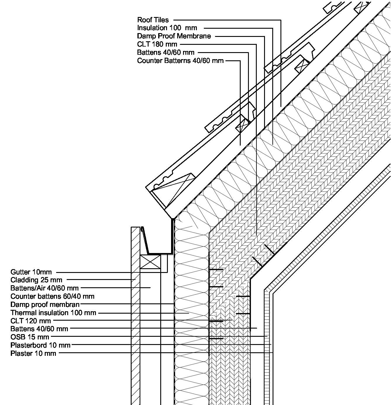 This was produced as a part of a 10 week course in detail drawing for envelope design. Collaboratively we worked on paper to sketch wall and roof build-ups in a range of materials, create sectional models and draw these to different scales in BIM. Here is an example of Cross-Laminated Timber Construction Details drawn to explore potential use in the Design Course.