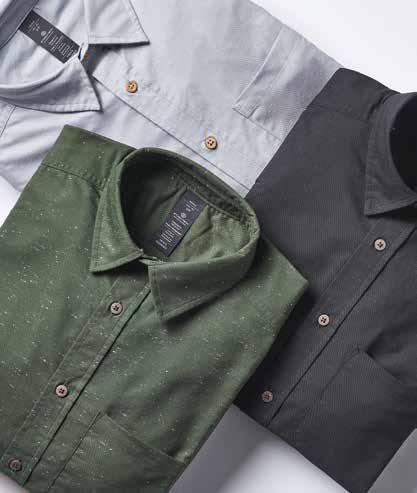 • 3-Button Placket • Anti-Curl Collar • Collar Stand • Mechanical Stretch • Hem Side Slits
