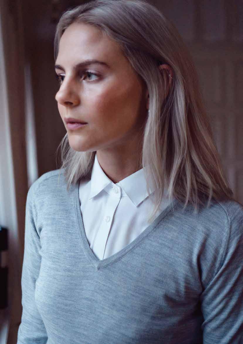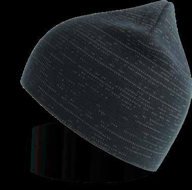 • Reflective yarn • Main fabric: 50% recycled polyester, 50% acrylic • 4 darts on top • Double layer • 6 stitchings • Flat machine • Gauge 10-rib 1x1
