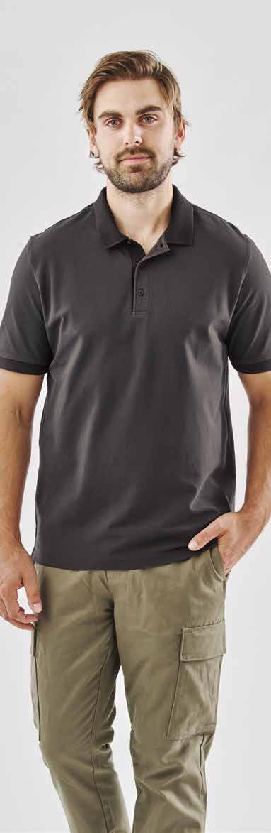 • Pure Earth by STORMTECH™ • STORMTECH H2X-DRY® Moisture Management • UPF Rating 50+ • Anti-Pill Fabric • Engineered Anti-Curl Collar • Classic 3-Button Placket • Dropped Back with Hem Side Slits • Mechanical Stretch