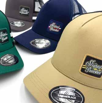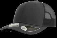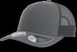 • Structured 6 panel trucker cap • Recycled polyester twill front panels • Recycled polyester mesh side and back panels