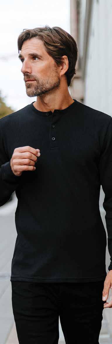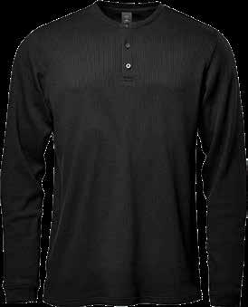 • 3-Button Henley Placket • Anti-Pill Waffle Fabric