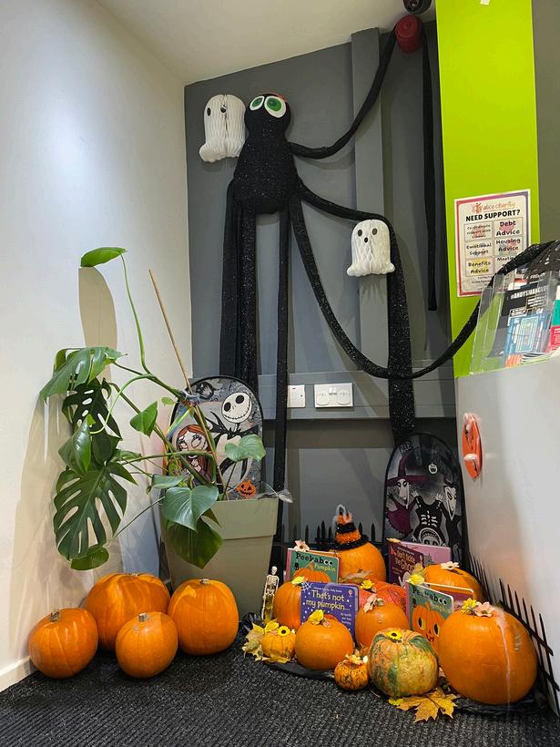 In Bentilee, our reception was transformed with Halloween decorations, and we gave away pumpkins throughout the week. On Halloween itself, we offered spooky storytelling sessions and handed out sweets and books to local trick-ortreaters.