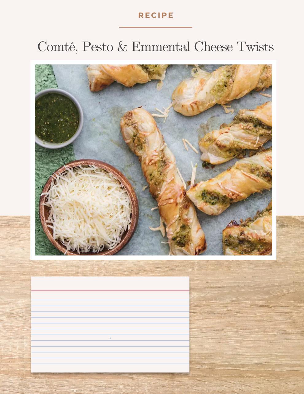 3. Spread the crème fraiche puff pastry sheet, top with pesto and a even layer of grated Emmental.