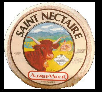 Saint Nectaire Auvermont is a semi-soft, uncooked pressed cheese salted in brine and ripened for at least 28 days. This dense cheese has a silky texture with a soft acidity, and its taste is similar to that of Reblochon with hints of hazelnut and mushrooms.