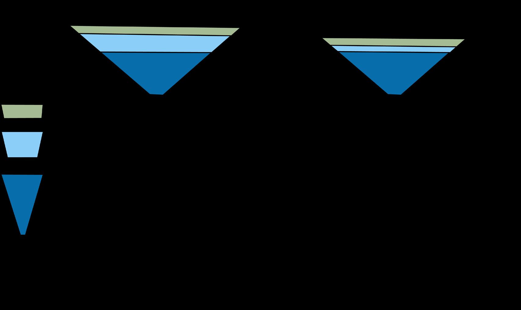 Figure 1 depicts a compositional model of two martini beverages. The beverages vary in total liquid volume while sharing the same total glass volume. Although the taste of the martini is derived from the proportion of each ingredient relevant to the total liquid volume (i.e., the composition), the structural composition of the right beverage is derived relative to the total glass volume. This demonstrates the distinction of considering compositional hierarchies with different normalizing denominators.