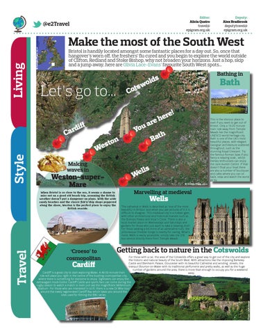 Bristol is handily located amongst some fantastic places for a day out. So, once that hangover’s worn off, the freshers’ flu cured and you begin to explore the world outside of Clifton, Redland and Stoke Bishop, why not broaden your horizons. Just a hop, skip and a jump away, here are Olivia Lace-Evans’ favourite South West spots...