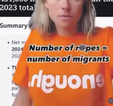 Following the news of Enough's presence at the march, a now-deleted Instagram Reel from Enough's o cial Instagram has resurfaced. While the text reads ‘Number of r@pes = number of migrants’ and at face value suggests a causal link between UK net migration figures and rape cases, the commentary by White in the video is about concern that media coverage and public outrage is disproportionately being directed to immigration rather than rape. When asked about the post,