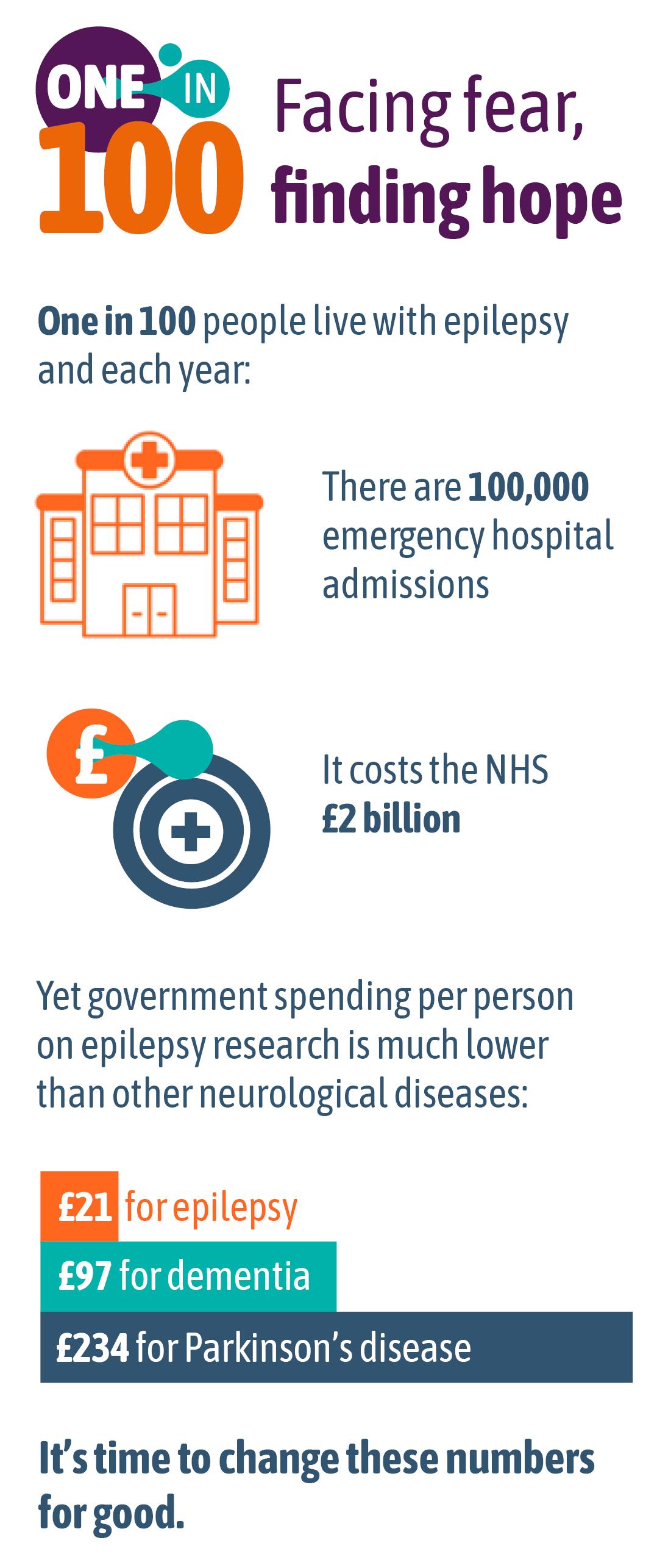 Raising awareness of epilepsy is one of our three strategic goals. Without it, we cannot increase research investment from government and other funders. This is why we launched our One in 100 Campaign in October last year to highlight the costs to society and shocking