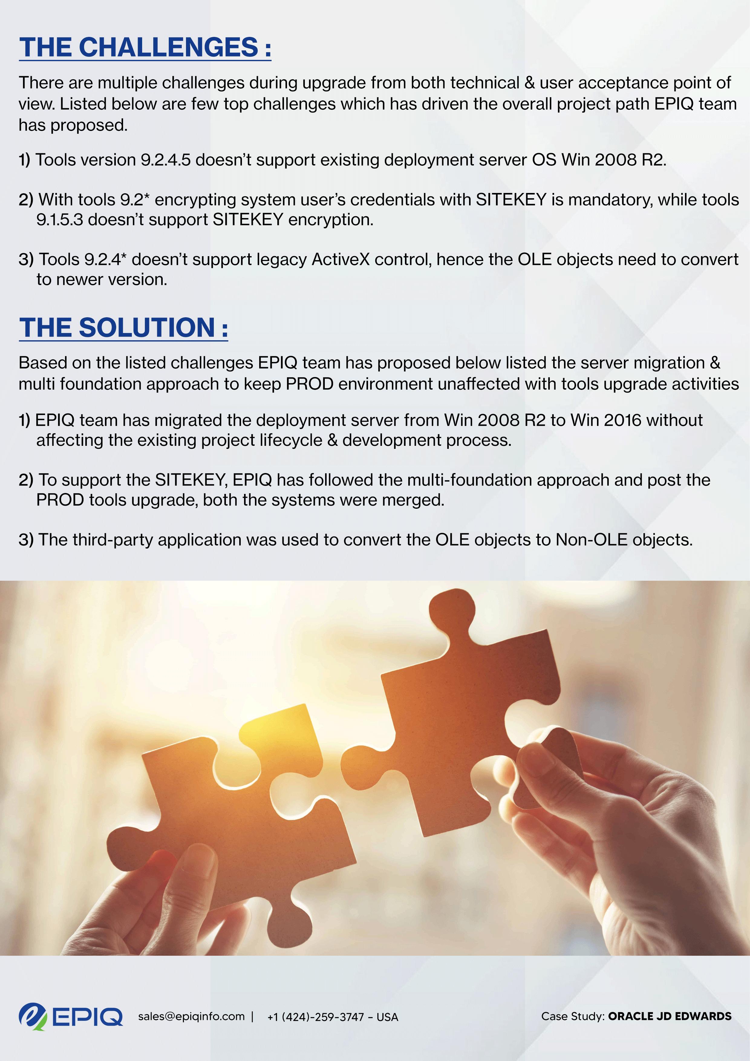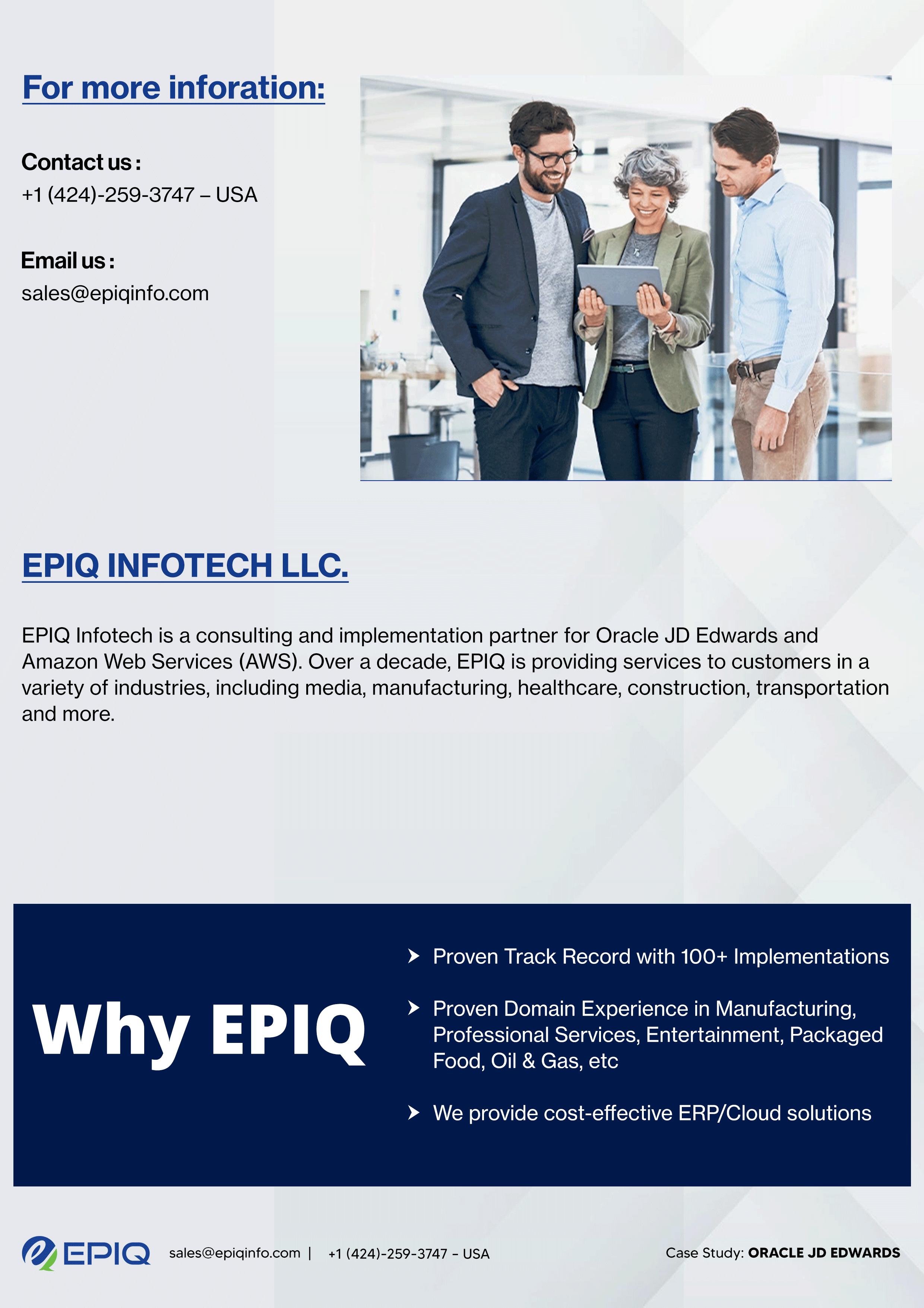 Epiq is the preferred Oracle JD Edwards Partner specializing in Consulting and Implementation Services, It Also offers 25+ years of experience in JD Edwards managed services designed for your JD Edwards environment.