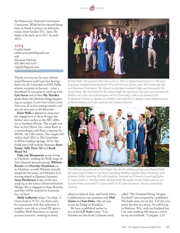 Caitlin Smith caitlin.ann.smith@gmail.com and Harrison Gilchrist (H) 804-443-5247 chgilchr@gmail.com 10th Reunion: June 2014