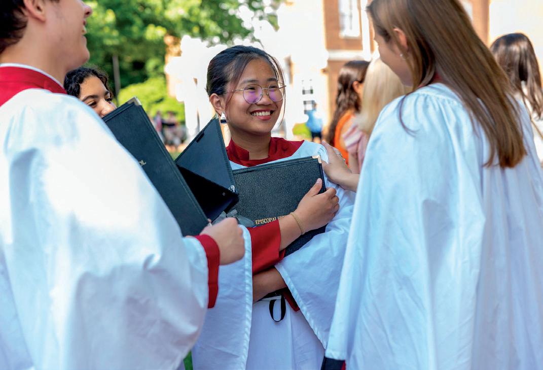 community support, especially when doing something out of your comfort zone. “I loved my chambers,” he reminisced. “It was such a welcoming community, and they made sure I was always okay.” The same was true of his time at Episcopal, where he learned to lean on his friends, peers, and teachers. “EHS has brought so many spectacular things into my life,” Benning said, “from extended family to connections and opportunities with important people.”