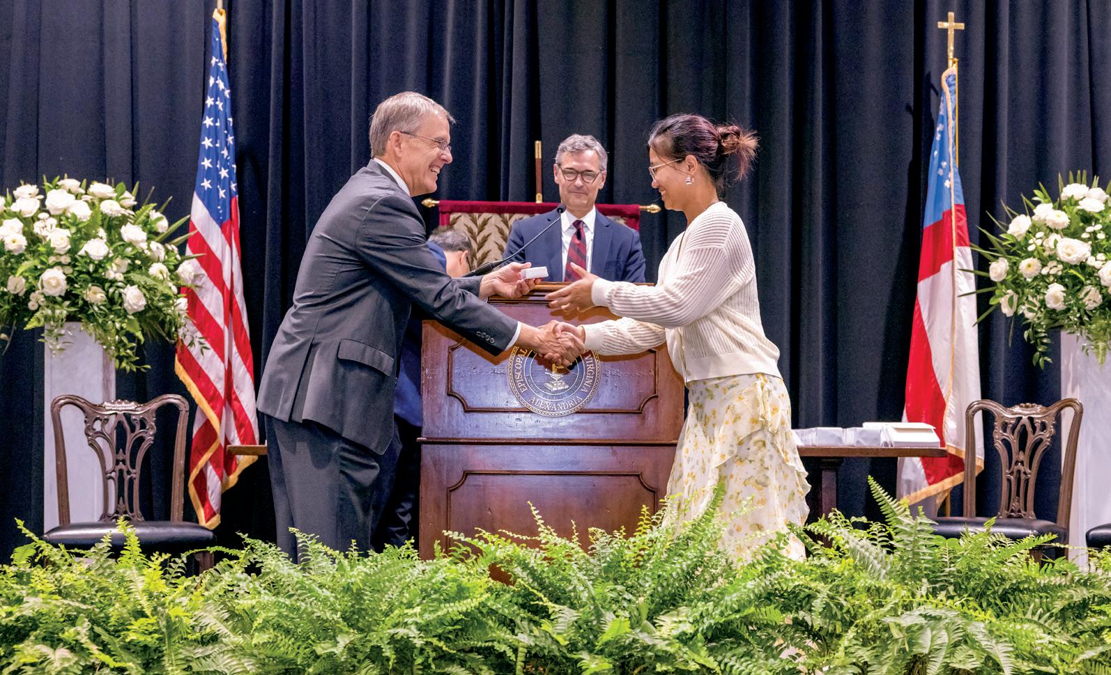 Austin deButts ’12 and Ava Sawi ’24 reflected on what Episcopal means to them in the ninth annual Fortiter, Fideliter, Feliciter Vespers service. 31