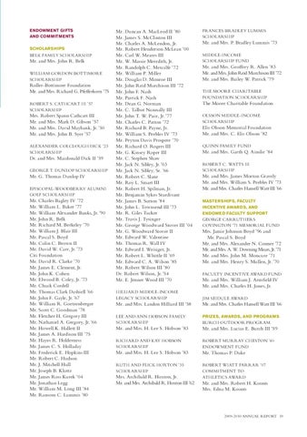 Mr. and Mrs. James Morton Gravely Mr. and Mrs. William S. Peebles IV โ73 Mr. and Mrs. Charles Hansell Watt III โ66 MASTERSHIPS, FACULTY INCENTIVE AWARDS, AND ENDOWED FACULTY SUPPORT