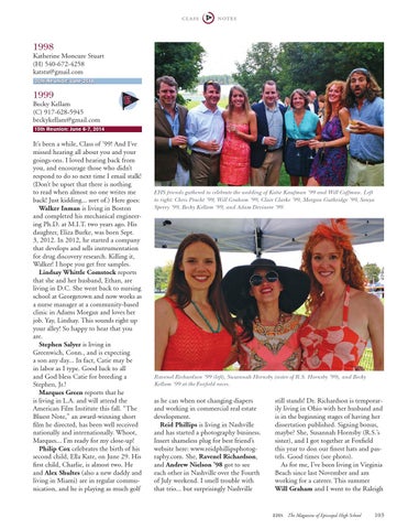 as he can when not changing diapers and working in commercial real estate development. Reid Phillips is living in Nashville and has started a photography business. Insert shameless plug for best friend’s website here: www.reidphillipsphotography.com. She, Ravenel Richardson, and Andrew Nielson ’98 got to see each other in Nashville over the Fourth of July weekend. I smell trouble with that trio... but surprisingly Nashville