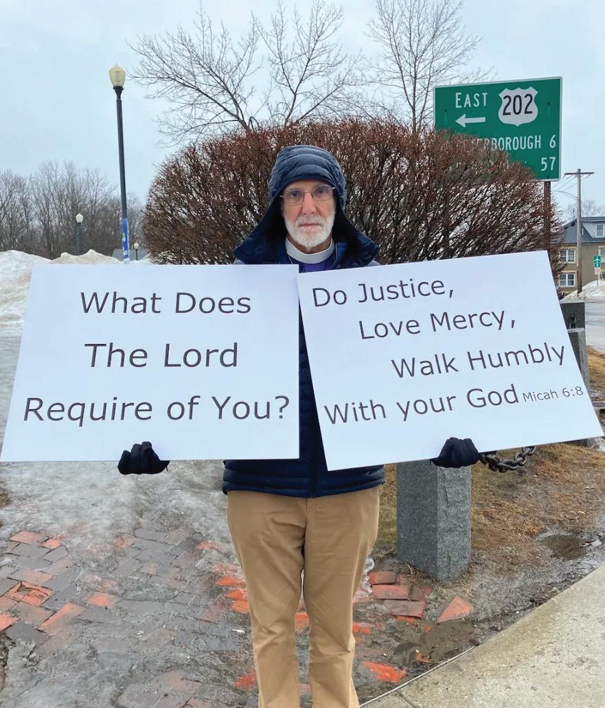 ▲ Bishop Mark Beckwith giving witness in Jaffrey, New Hampshire.