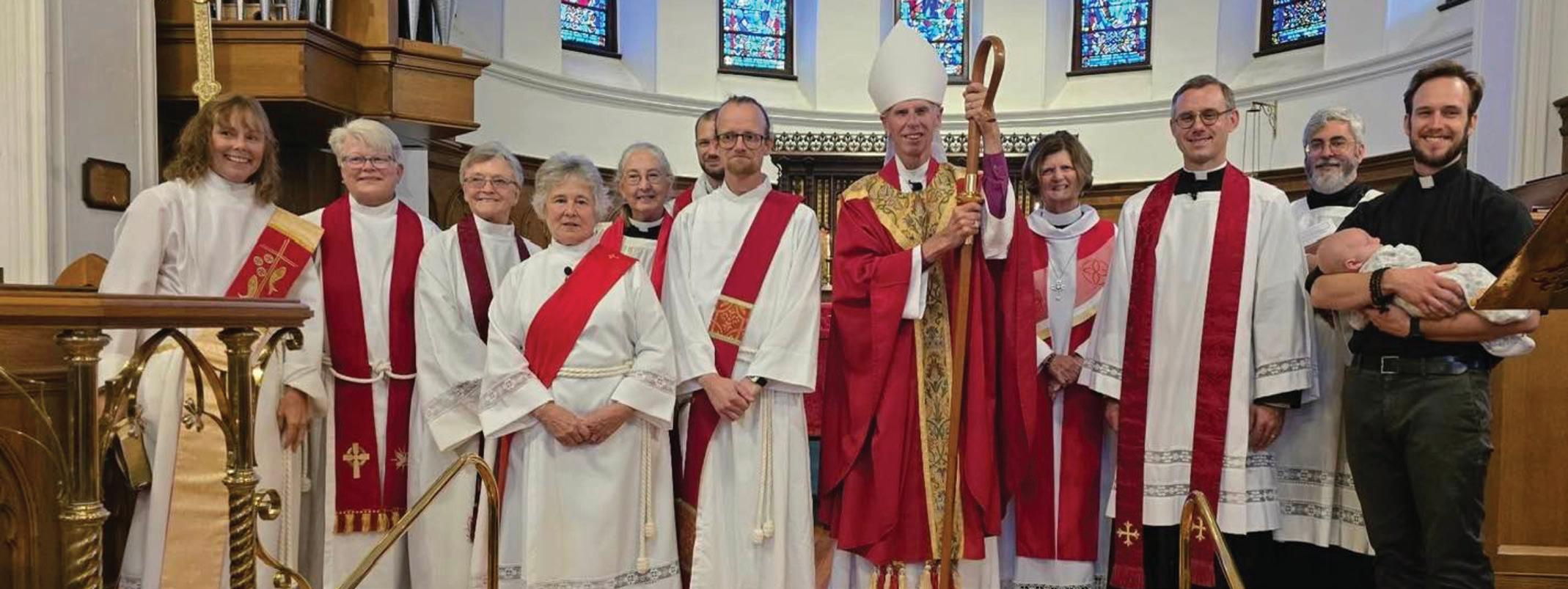 May 3, 2025 - "Blessed to pray at Christ Church Cathedral as we installed Jose Reyes as the new dean. Enthusiastic congregation for a liturgy in English and Spanish. In this picture is the Cathedral’s Deacon Kate DeRose, Jose and his family, and my predecessor as Bishop of WMA, Gordon Scruton, who knew Jose as a child growing up at our Cathedral. The Jesus Movement Rolls On."