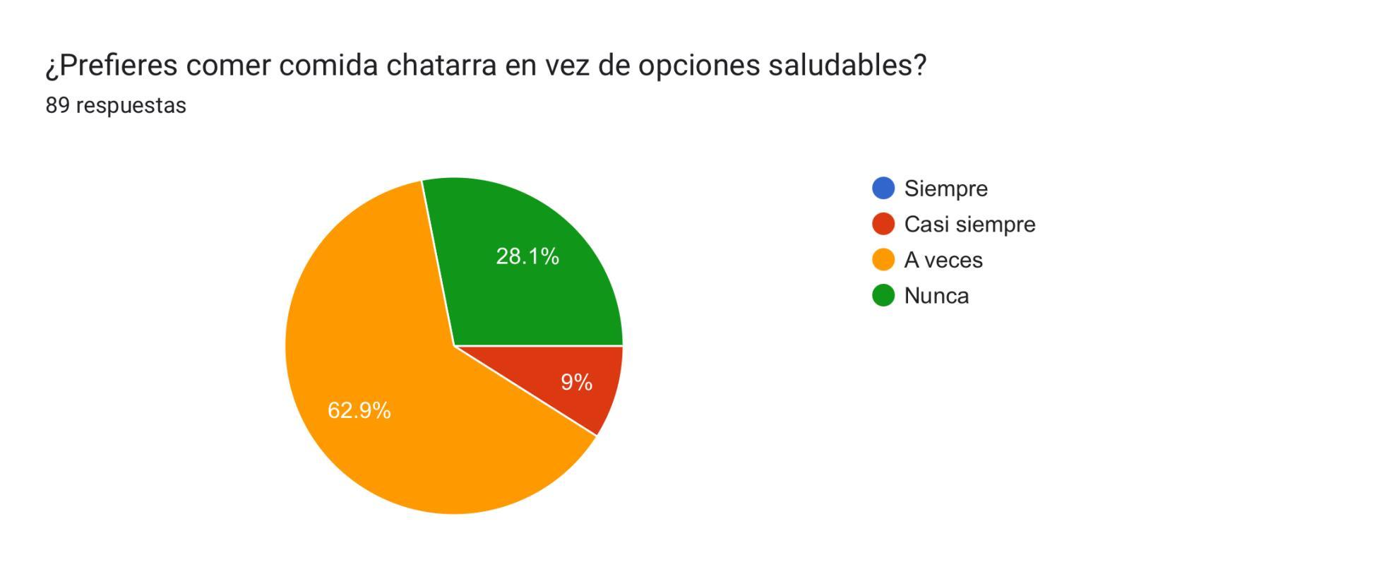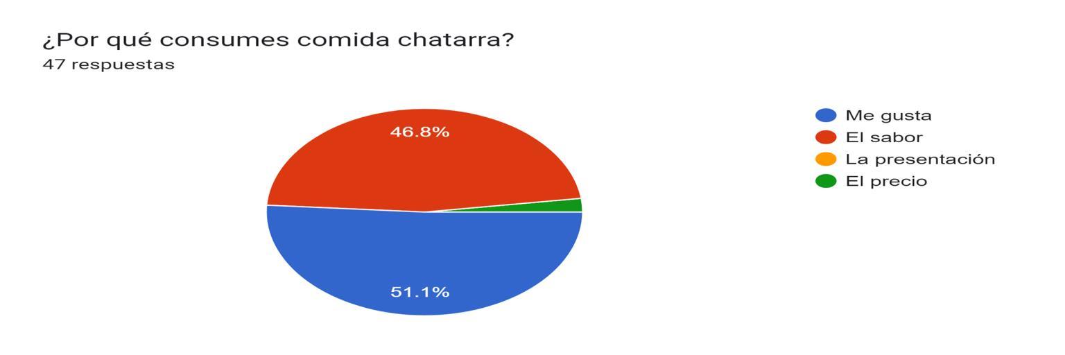 Entre los factores que influyen en esta preferencia, se destaca la conveniencia y accesibilidad de la comida chatarra, con un 55% de los encuestados mencionando que optan por este tipo de alimentos debido a su disponibilidad inmediata. Asimismo, un 45% señaló que el sabor y la variedad de opciones son determinantes en su elección de comida chatarra.